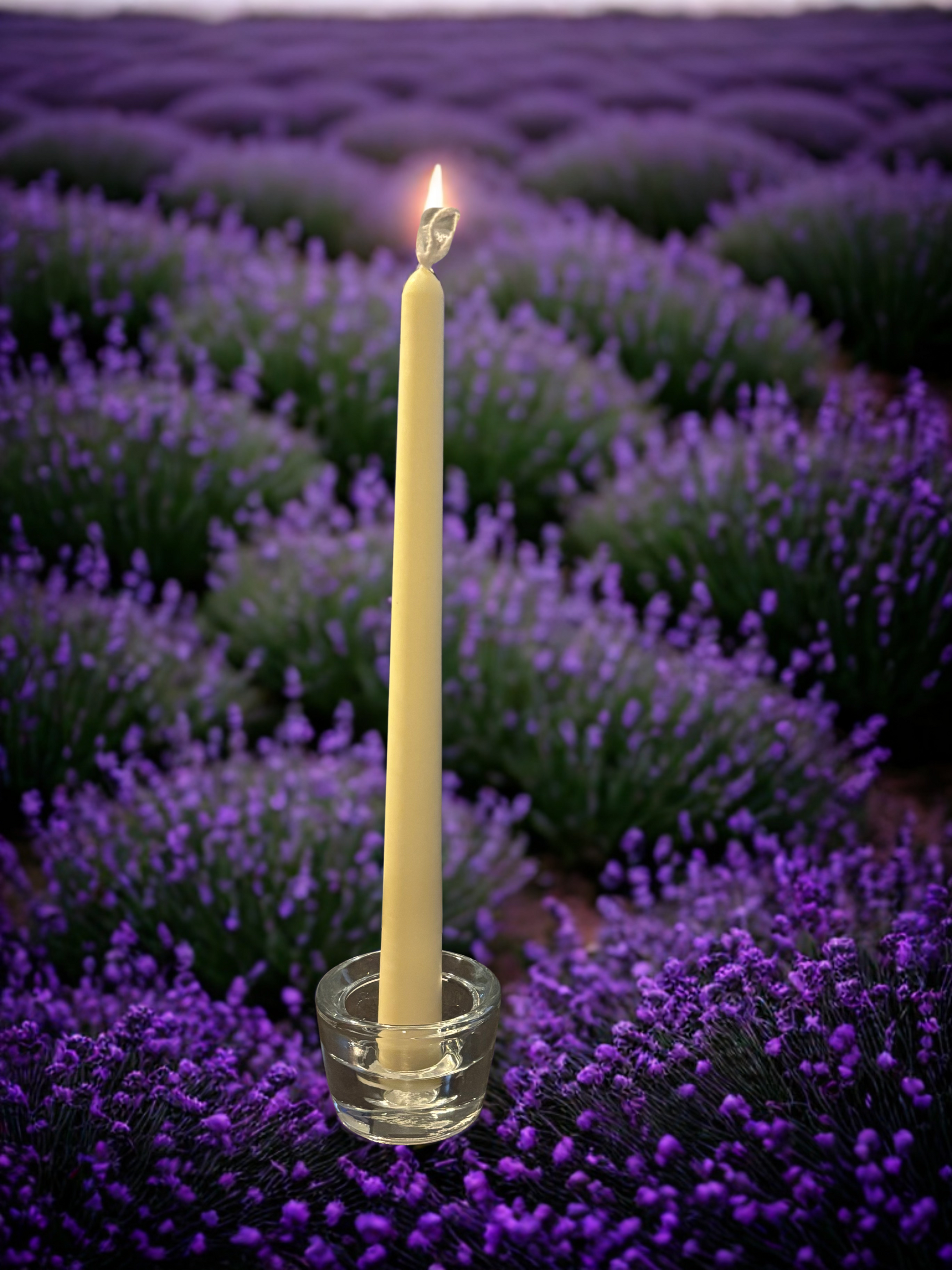 Beautiful narrow taper 10 inches long. Fits in standard taper candle holder.