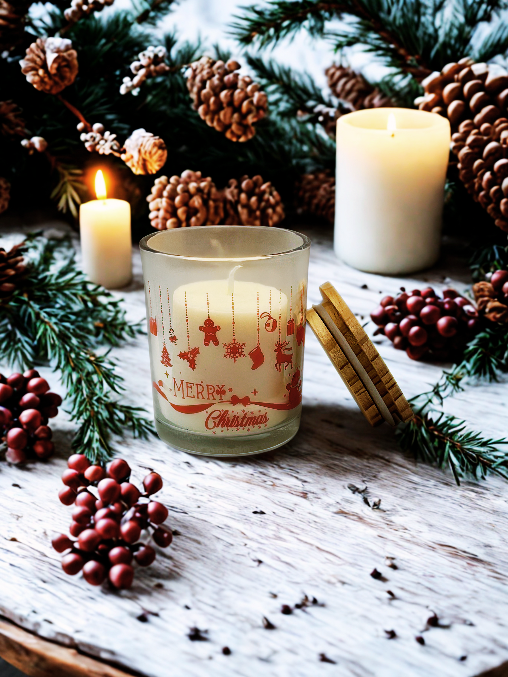 Celebrate the season with this 9 oz holiday-themed scented candle, expertly crafted to bring warmth and festive ambiance to any room. The Christmas design captures the essence of the holidays with carefully selected notes that evoke comfort and tradition. Topped with a natural bamboo lid, this candle combines sustainable design with timeless appeal. Perfect for creating a serene holiday atmosphere or as a thoughtful gift for those who appreciate quality home fragrance.